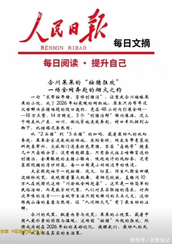同日下午,人民日报客户端发布题为《一碗刨猪汤,熬出人间烟火气》的深度评论文章。