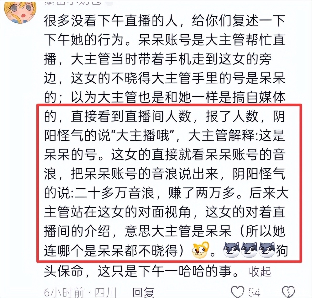 更令人愤慨的是,她在看到呆呆直播间的打赏数据后,公然嘲讽:“你看她收了多少礼物,赚得多欢啊!”所幸广大网友迅速反击,对其言论进行围剿。