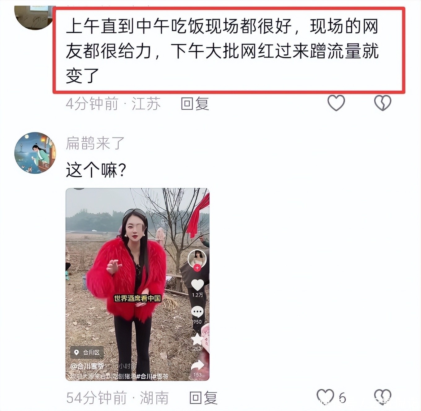 其中一名身穿红色外套的女子行为尤为恶劣。她不仅在现场展示个人商品,还公开宣传自己经营的酒厂,借机引流。